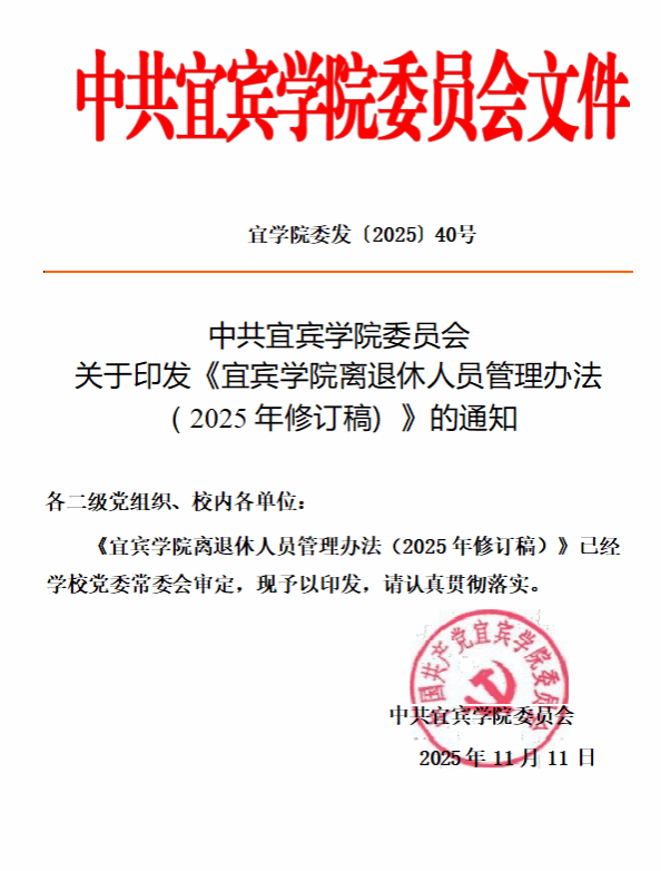 关于印发《宜宾学院离退休人员管理办法(2025年修订稿)》的通知